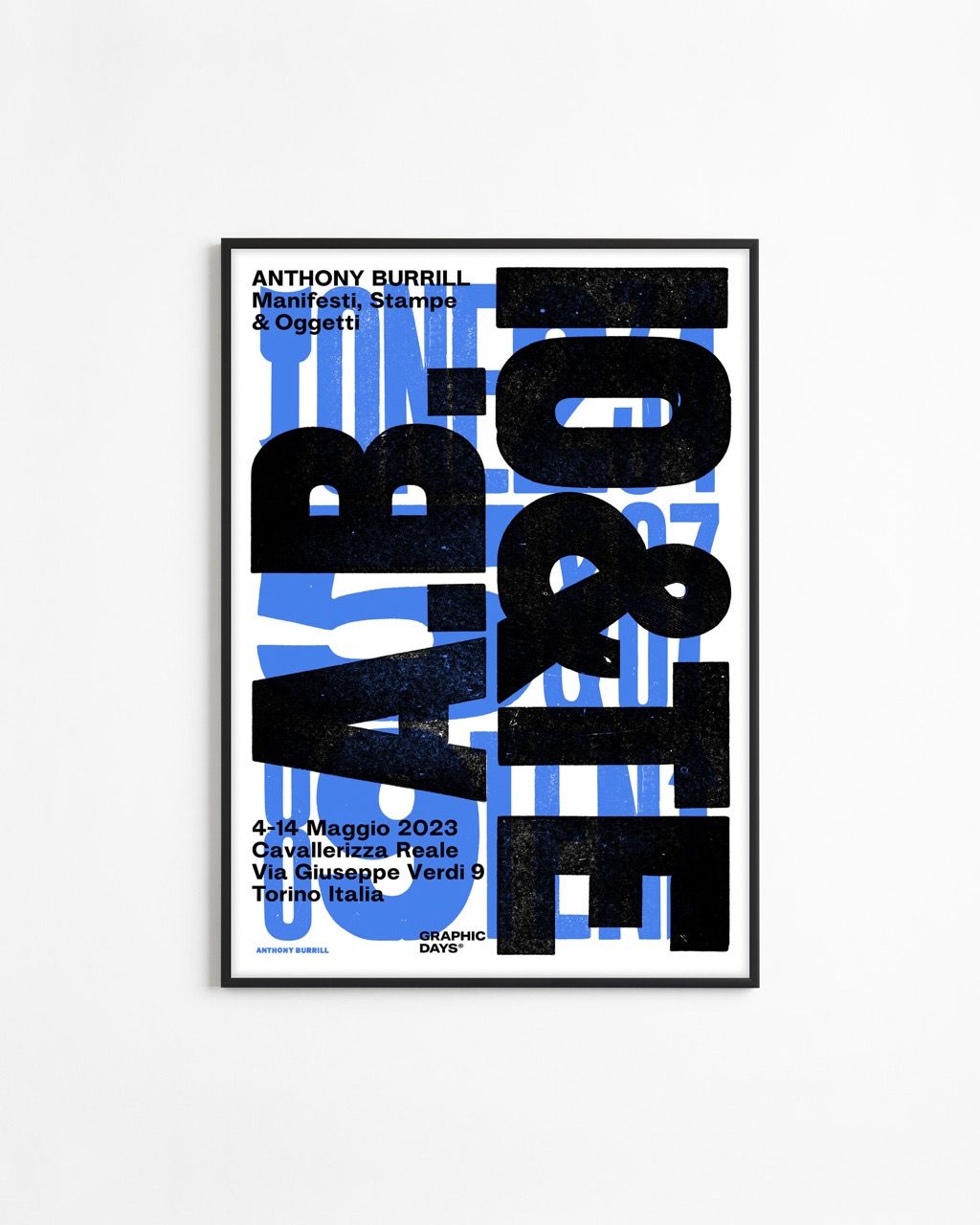 Typographic silkscreen poster by Anthony Burrill, internationally renowned designer and graphic artist. AB IO & TE is the poster for the exhibition created by the artist for Graphic Days®. UNIQUE PIECE