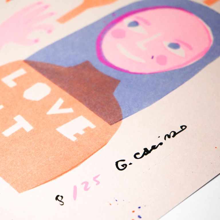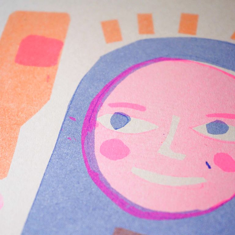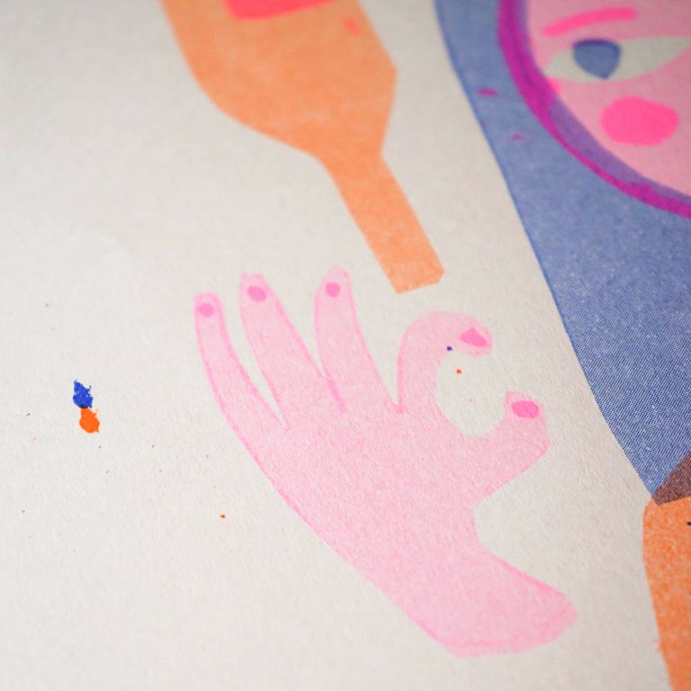 The artwork was created during the Print Parade edition of Graphic Days® Size: A3 Limited edition, signed by the artist, printed in two-color risograph Paper: Fedrigoni, Woodstock Cipria