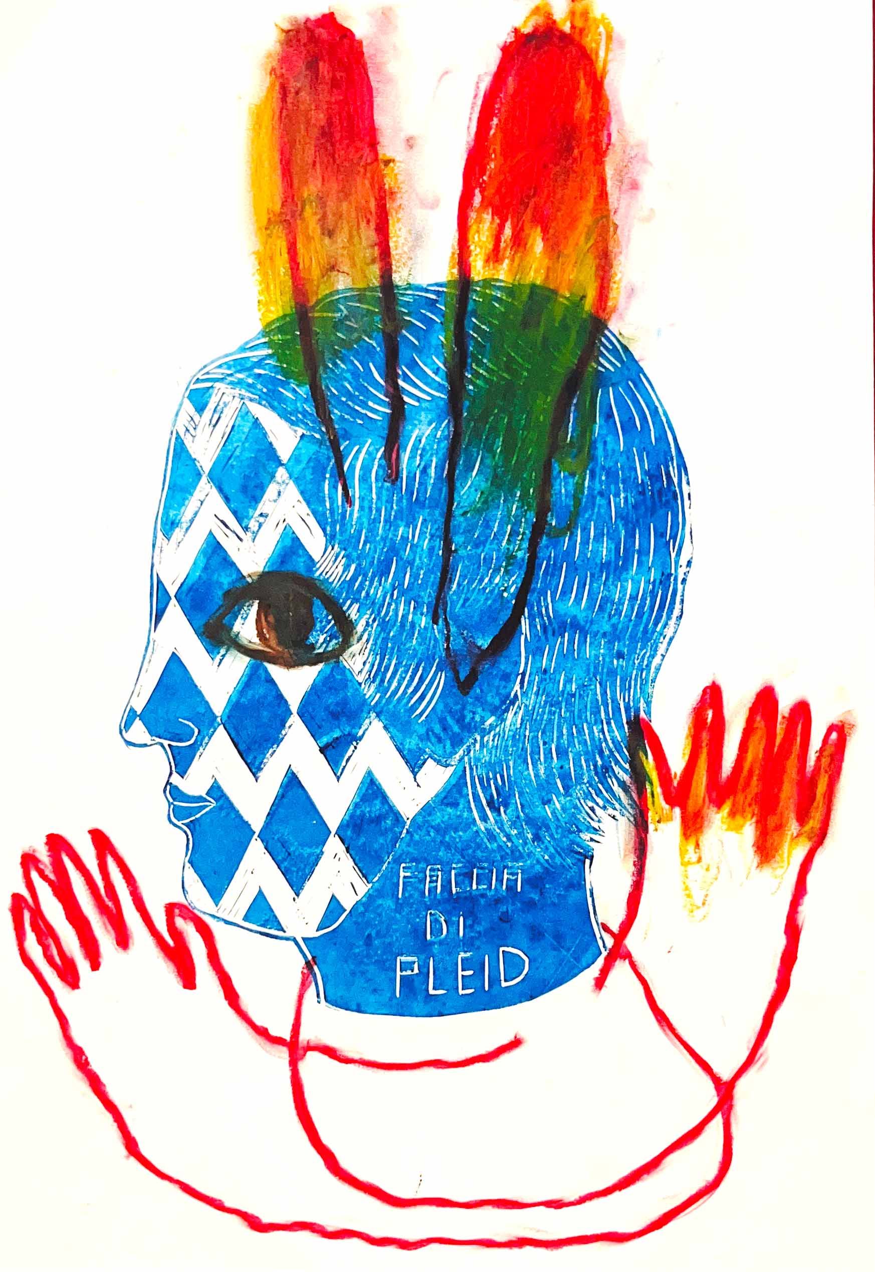 Original artwork created by Matteo Giuntini during the Graphic Days® 2024 Festival. The artistic intervention combines the use of chalk with the technique of linocut.
