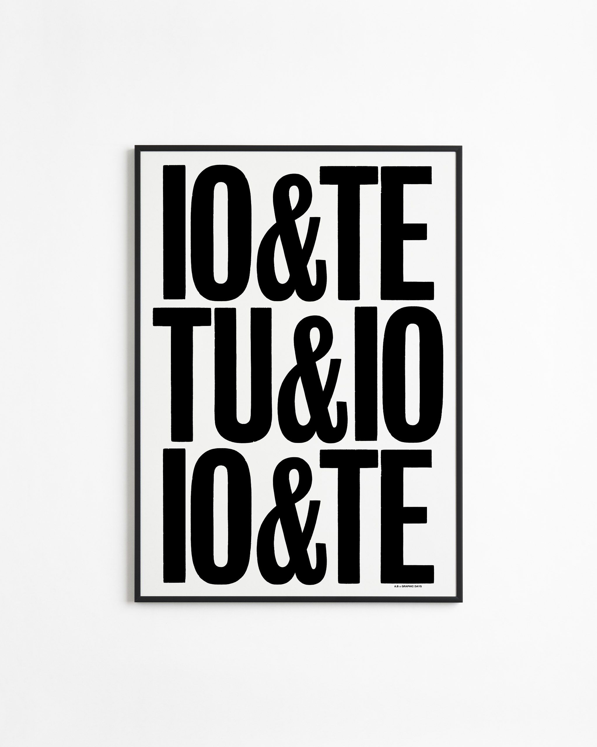 Typographic poster in screen printing by Anthony Burrill, internationally renowned designer and graphic artist. IO & TE is a limited edition created by the artist specifically for Graphic Days® Print Parade and printed by Print Club Torino.
