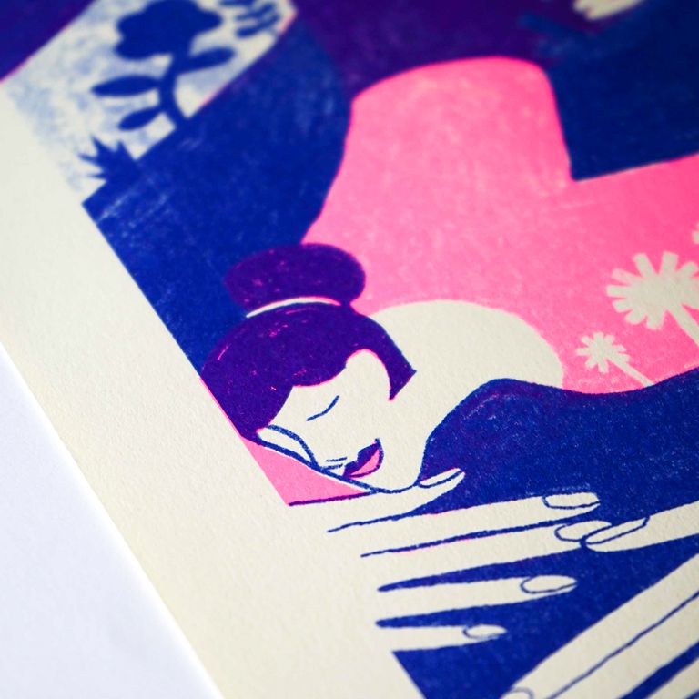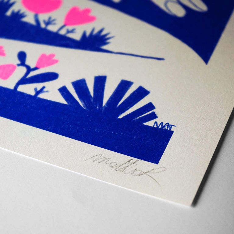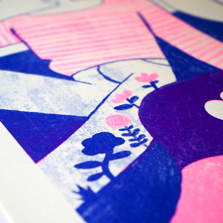 The artwork was created during the Print Parade edition of Graphic Days® Size: A3 Limited edition, signed by the artist, printed in two-color risograph Paper: Fedrigoni, Woodstock Betulla 285 g/m2