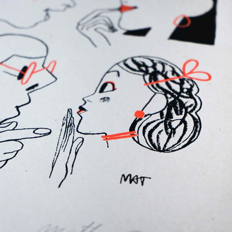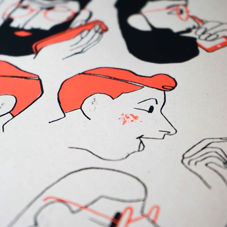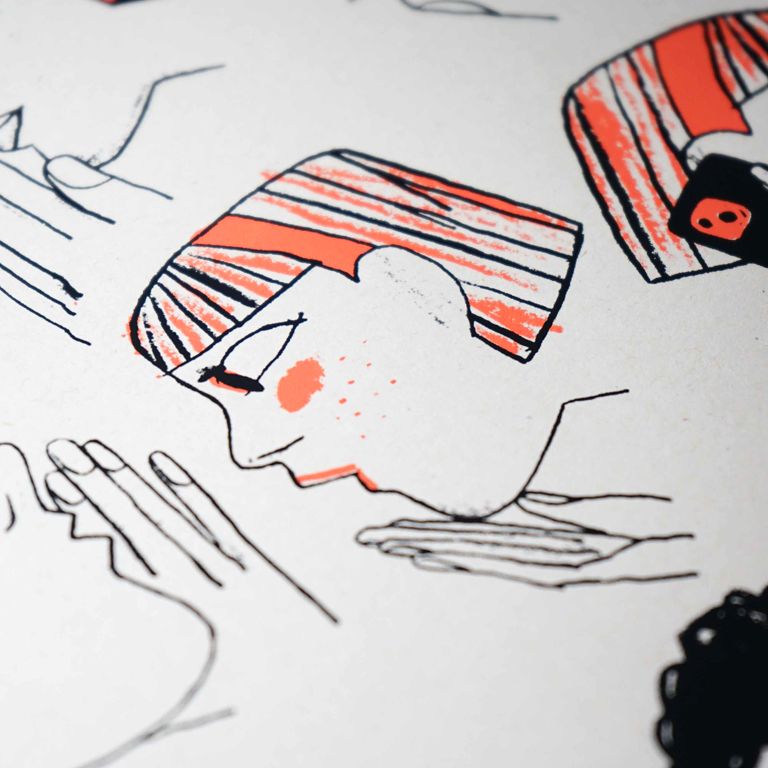 The artwork was created during the Print Parade edition of Graphic Days®. Size: 50 × 70 cm Limited edition; signed by the artist, screen printed in two colors Printed on 285 gsm Fedrigoni Woodstock Betulla paper.