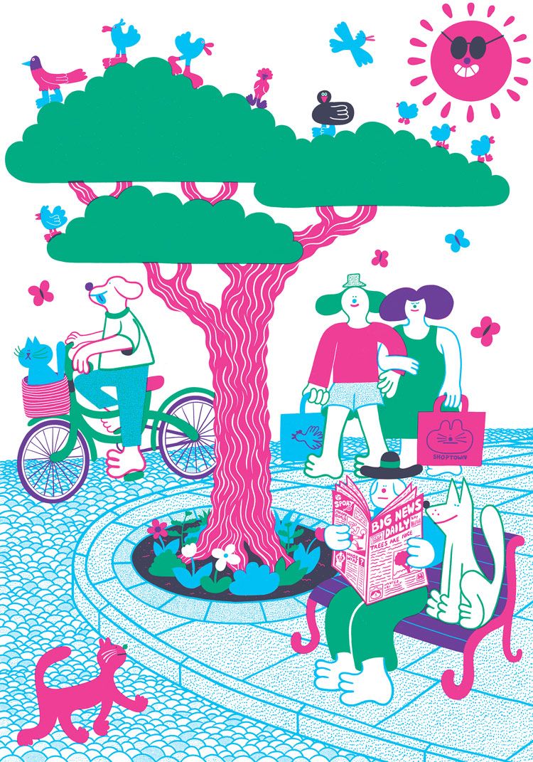 100 illustrations for a charitable goal: helping the environment by planting new trees in the city.