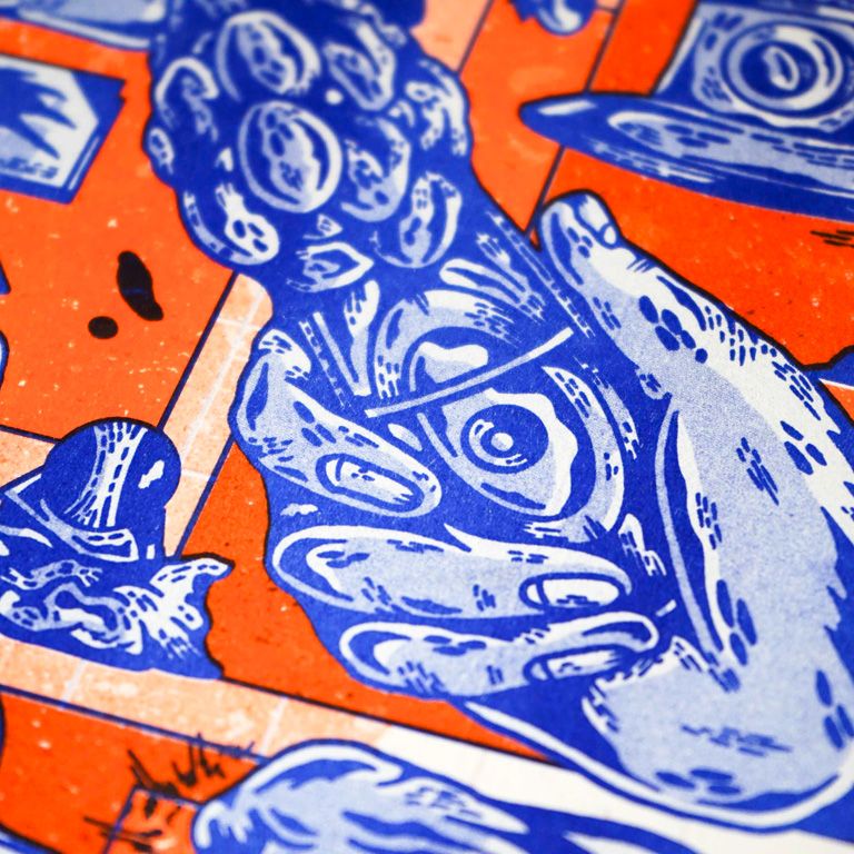 Wobby.club is a platform for independent illustration and visual art in the Netherlands. They have been publishing and printing the quarterly magazine Wobby in their Tilburg studio since 2015. Wobby showcases quirky illustrations, comics, visual arts and literature by various international artists and is sold worldwide. All products, including Wobby, art prints and other publications are printed in Risograph: Colored print based on sustainable vegetable ink.