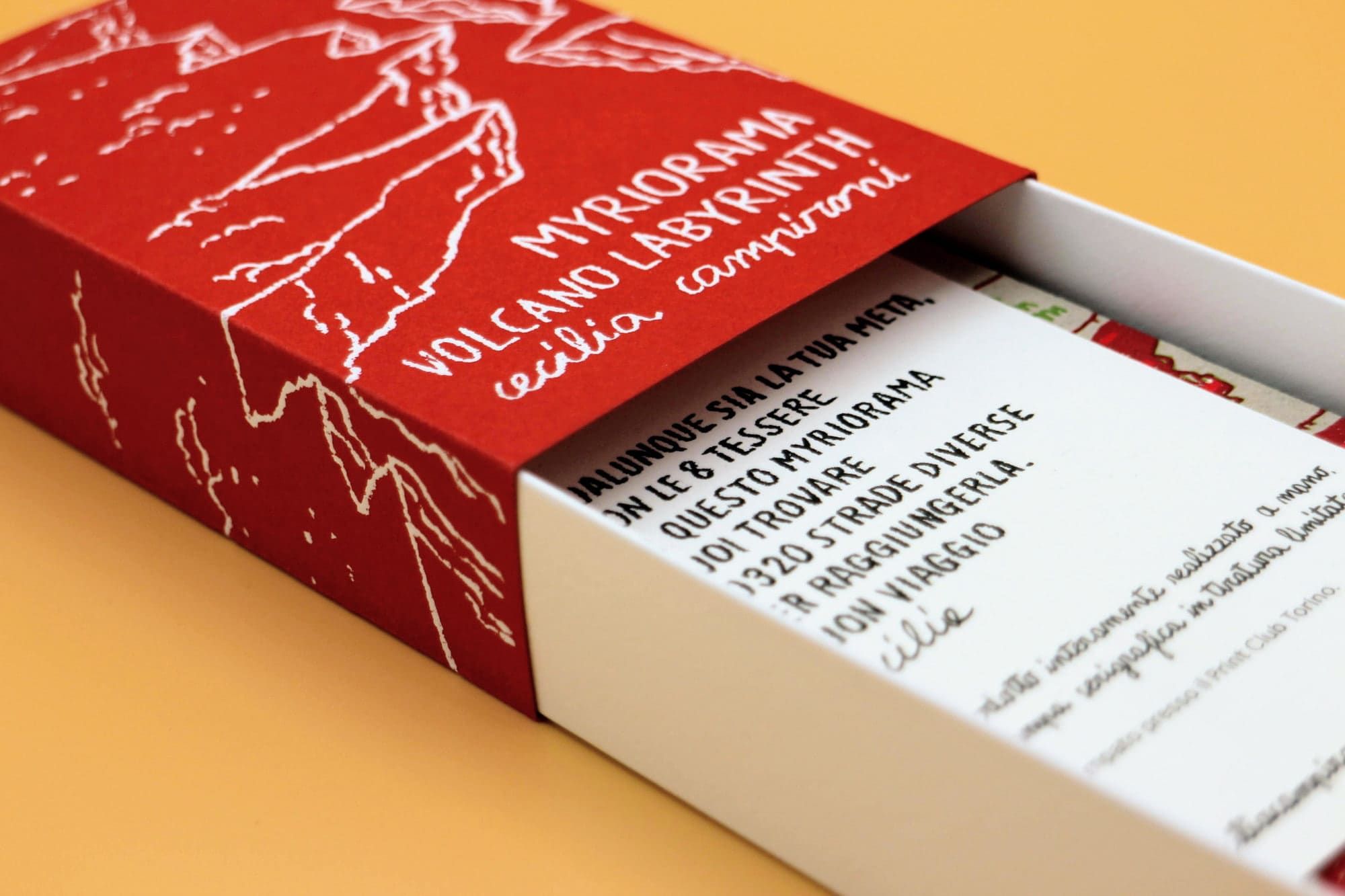 Myriorama – Volcano Labyrinth è molto più di un semplice gioco da tavolo: è un paesaggio illustrato da esplorare, un racconto visivo da ricomporre, un oggetto d’artista da collezionare. Le otto carte serigrafate, accostate tra loro in qualunque ordine, danno vita a una scena continua: un labirinto di isole vulcaniche, crateri e strane presenze. Ogni combinazione genera una nuova configurazione del paesaggio, offrendo un’esperienza sempre diversa, fatta di scoperte e nuove connessioni.