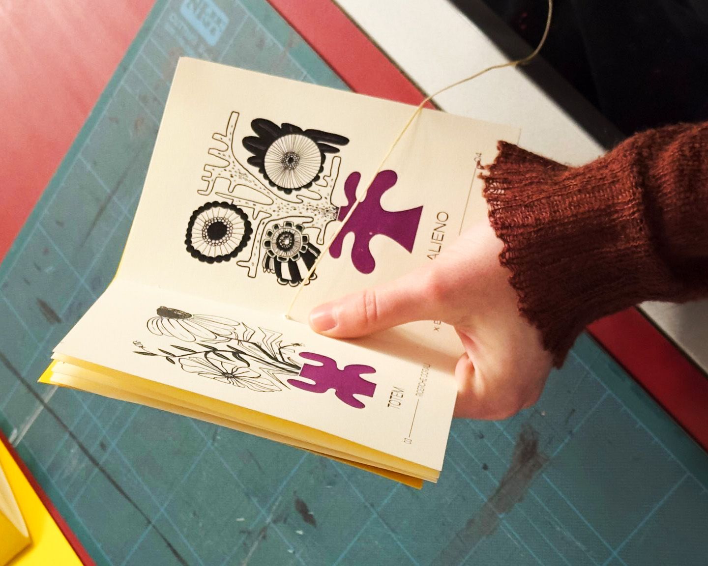 Fase 3: Osserverai come la zine si trasforma da foglio di stampa a prodotto finito, seguendo le fasi di piegatura, legatura artigianale e rifinitura. In questo passaggio, imparerai le tecniche fondamentali della microeditoria indipendente.