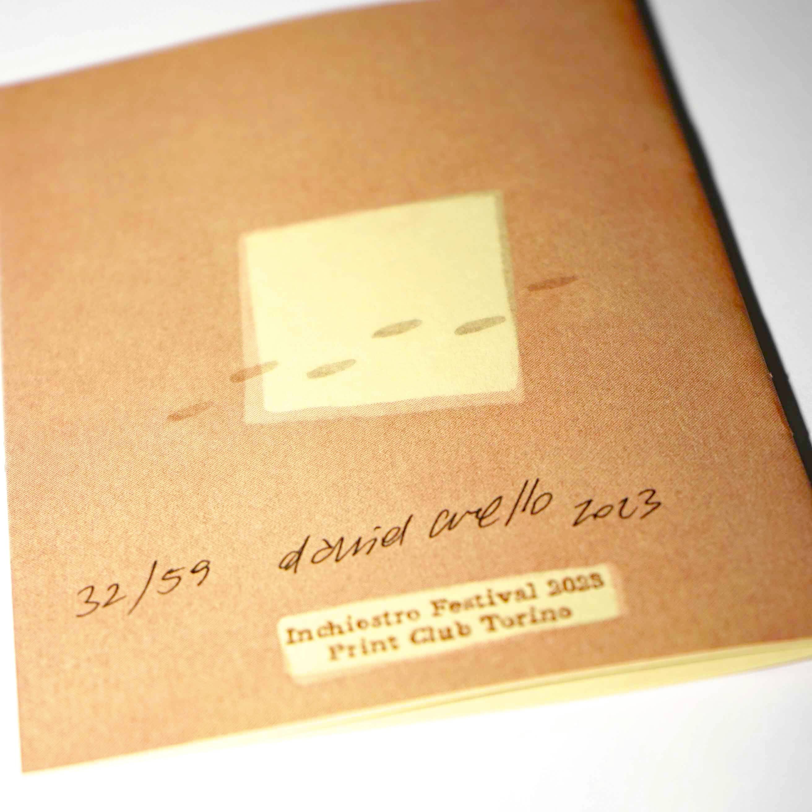 Durante l'edizione Impronte di Inchiostro ha realizzato questa mini zine in formato A6 dedicata a Italo Calvino. Stampata in 59 copie in risograph,nei colori rosso e brown su carta fedrigoni Woodstock camoscio da 110 g/m2, firmate e numerate dall'artista.