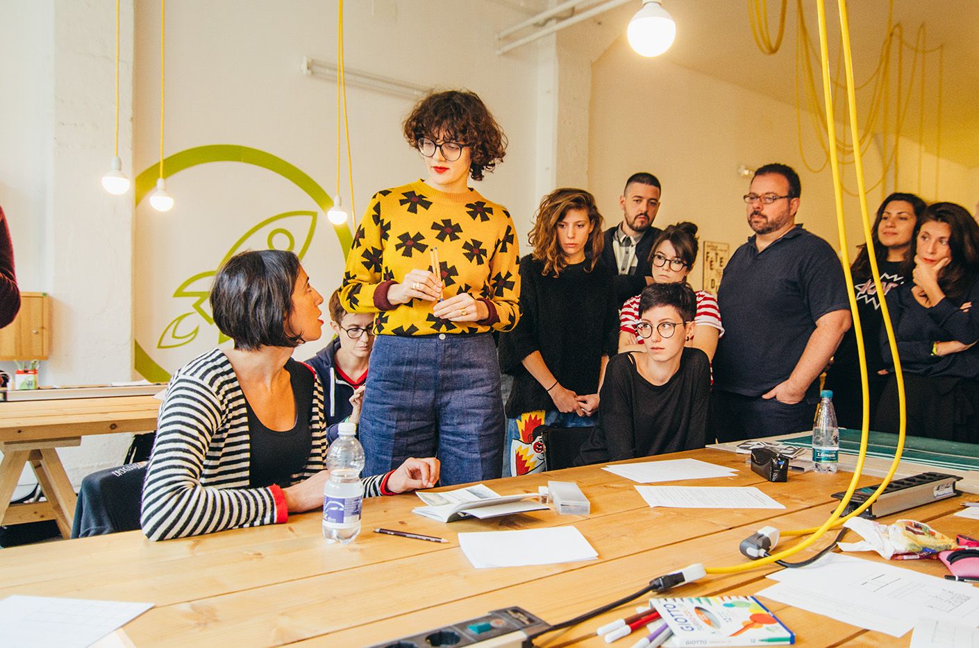 Olimpia Zagnoli è un’illustratrice e il suo stile si caratterizza per le forme morbide e per i colori camaleontici. Le sue illustrazioni sono state esposte in diverse gallerie di tutto il mondo.